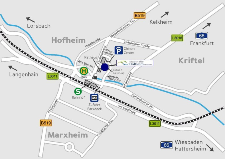 Eine Anfahrt mit der S-Bahn erfolgt über die S2 oder alternativ mit dem RB in/aus Richtung Limburg.